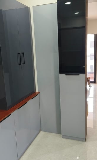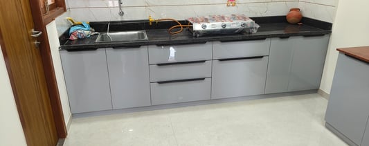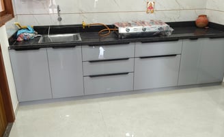 The semi-modular kitchen design exceeded my expectations, blending functionality and style perfectly. Highly recommend Madhav Furniture for any interior design needs.